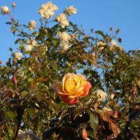 冬薔薇 ふゆそうびと読みます。冬の季語です。文字通り冬に咲いているバラ。強さ、はかなさ、さびしさ、いろいろな表現に使われます。 このバラは「スヴニール・ドゥ・アンネフランク」。アンネフランクの思い出、というバラです。 大 …